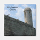 Este ímã de geladeira tem uma fotografia colorida de uma torre e alguns cânones na Rua. Augustine, Florida no Fort Castillo de San Marcos.