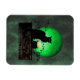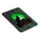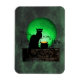 Uma silhueta do gato preto de Théophile Steinlen para o clube Le Chat Noir num cenário moderno para a Rua. Dia de Patrick com olhos verdes, uma lua de cheio verde, uma videira com shamrocks e um pote de ouro.
