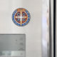 O outro lado da medalha é onde a verdadeira força exorcista se revela. No centro está a Cruz. Benedict amava a Cruz e a usou para afastar demônios. O feixe vertical da Cruz tem cinco letras: C.S.S.M.L., significando Crux Sacra Sit Mihi Lux (Que a Cruz Santa seja para mim uma luz). O feixe horizontal da cruz também tem cinco letras: N.D.S.M.D., significando Non Draco Sit Mihi Dux (Que o dragão não seja meu guia). As quatro letras grandes aos ângulos da cruz: C S P B representam o Crux Sancti Patris Benedicti (A Cruz do Santo Padre Bento). Ao redor da cruz em um círculo à volta da margem direita estão as seguintes letras: V.R.S.N.S.M.V., que significa Vade retro Satana; nunquam suade mihi vana (Satã inicial)! Sugira-me que não me faças coisas vãs). À volta da margem esquerda do círculo estão as seguintes letras: S.M.Q.L.I.V.B., que significa Sunt mala quae libas; ipse venena bibas (A bebida que você oferece é mau; beba esse veneno você mesmo). No topo do círculo está a palavra PAX (Paz). Não se prescreve nenhum modo especial de carregando ou de aplicação da medalha. Pode ser vestida em volta do pescoço, fixada ao escápulo ou ao Rosário ou simplesmente carregada no bolso. Muitas vezes é colocada nos campos, nas fundações de prédios ou acoplada a automóveis para chamar a bênção de Deus e a proteção das Ruas. Nenhuma oração específica é prescrita, pois o devout que se veste é uma oração silenciosa contínua.