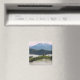 Fotografia de Souvenir com a igreja da Rua Thomas (Sveti Tomaž), numa colina rodeada por nevoeiro matinal na zona rural da Eslovênia, perto de Skofja Loka, durante um nascer de sol rosa com montanhas alpinas ao fundo.