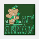 Um bonitinho ursinho vestido de Rua verde e feliz. Dia de Patrick em texto verde.