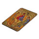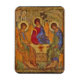 Antiquado Andrei Rublev trabalho de arte/ícone representando o Pai, o Filho e o Espírito Santo sentados numa mesa. As imagens parecem ter asas de anjo.