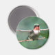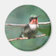 Fotografia de um macho de beija-flor, com garganta de rubi, balançando suas asas enquanto ele se acomoda depois de uma perseguição.