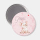 Ein runder, rosa farbener Magnet mit einem fröhlichen kleinen Schwein und dem Schriftzug Glücksschwein.