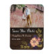 Wood Rústico e Flores Rosa Escamoteadas Salvem o ímã de convite de Data com foto personalizada do casal.