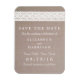 Estas imã salve o dia são perfeitas para qualquer casal planejando um casamento romântico por país. O design apresenta um fundo de efeito kraft rústico com um espaço branco faux vintage e uma redação branca. O design simples pode ser personalizado para se adequar ao seu evento especial e será o anúncio perfeito para qualquer festa temática rústica, incluindo chás de panela, noivados, chás de casamento, festas de aniversário e muito, muito mais.