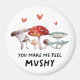 Design de ímã engraçado com ilustração aquosa de cogumelos com um texto que diz "você me faz sentir cogumelo"