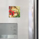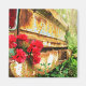Esta linda cena rústica apresenta flores vermelhas brilhantes do cravo, um caminhão Chevy enferrujado e um vibrante pano de fundo natural verde.