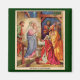 Cena da Natividade de Natal com sábios visitando Jesus e Mary na pousada. Natal vintage e, quando entravam em casa, viram a criança com Mary sua mãe, e caíram, e o adoraram: e quando abriram seus tesouros, eles lhe apresentaram presentes; ouro, incenso e mirra. Mateus 2:11