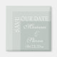 Simples e moderno ímã de casamento 'SAVE OUR DATE' para noivas que estão adorando suas cerimônias em sábio moderno. Tudo definido em uma fonte branca moderna com iniciais laterais.