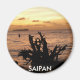 Um belo pôr do sol laranja sobre o oceano, como visto pela Microl Beach Saipan. A silhueta da madeira derivada e a nave no horizonte adicionam um sotaque adorável.