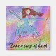 Ilustração gráfica de uma mulher saltando no ar e design colorida ao fundo. Personalize com sua mensagem para alguém especial em qualquer ocasião. Arte original de Magins Creations.