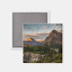 Torres de Monte Grinnel sobre o lago Swiftcurrent enquanto o sol nasce no Vale de Muitos Glaciares do Parque Nacional Glacier.