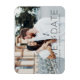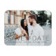 Um ímã moderno para salvar a data, exibindo sua foto de noivado favorita com "Salvar a Data" em uma fonte preta simples sobreposta, complementada por um elegante texto em caligrafia. Personalize o ímã de salvamento de data adicionando seus nomes, data do casamento e local do casamento.