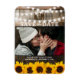 O amor está no ar! Mostre o casamento dos felizes noivos com este lindo ímã de "salve a data" em estilo rústico. Com uma foto sua e do seu parceiro(a), um fundo rústico de barril de carvalho de celeiro country e luzinhas cintilantes, este ímã de "salve a data" é perfeito para todos os casamentos com tema rústico. Os girassóis amarelos naturais adicionam um toque de cor e elegância, enquanto seus nomes, o local da cerimônia e a data do casamento são apresentados em uma fonte clássica para garantir um visual e sensação atemporais. Seu monograma é um ótimo adendo que certamente vai deliciar seus convidados.
