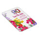 Celebre incríveis 90 anos com este elegante ímã de salvar a data com cantos arredondados. Um “90” floral colorido rodeado por flores em aquarela em rosa, roxo, amarelo e verde cria um design alegre e moderno. Uma lembrança prática para familiares e amigos exibirem na geladeira até o grande dia. Totalmente personalizável com seus detalhes. Aproveite!