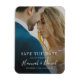 Este simples casamento de fotos quentes... salve a data em que o imã de fotos tem um design quente e minimalista. Ele contém o texto SALVAR A DATA acima de seus nomes e data e local do casamento. Este texto é branco e seus nomes são destacados com uma fonte viva e caprichosa de escrita manual que dá um senso de calor e familiaridade a esse olhar moderno minimalista. Use as ferramentas intuitivas de design, sua foto favorita e sua inspiração para torná-la exclusivamente sua!