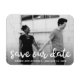 Imã salve a data de fotos moderna com a imagem de sangria horizontal do cheio com uma sobreposição de texto. As palavras "salvar nossa data" estão em uma espessa fonte de script manuscrito branco. Um simples na moda que faz da sua foto o principal recurso.