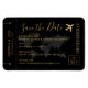 Salve a Data de um Casamento de Destino que se parece com um Bilhete de Plano de Passagem de Embarque em Preto Elegante e Faux Dourado apresenta um ícone romântico de avião e detalhes autênticos da passagem de retrô, como um código de bar, atribuição do número do assento e seções informativas que você pode personalizar com qualquer texto que você queira para um tema de viagem ou casamento no exterior. Nossos miniímãs de ingresso de avião são intencionalmente simples, elegantes e formais enquanto ainda se assemelham a uma autêntica passagem de viagem, para que trabalhem com uma variedade de temas de convite de destino enquanto incutem alguma diversão criativa para o seu casamento único, que os hóspedes viajarão para celebrar com você. O embarque de ímãs de passagem de avião se encaixa muito bem com cartões salve a data de passaporte, cartões de inserção de mapa mundial para um visual de mixagem ou de fósforo, ou inclui-os com seus cartões de embarque maiores. NOTA DO DESIGNER: verifique o tamanho de todo o seu convite e insira as placas para ter certeza de que elas empilharão gentilmente e irão ajustado nos envelopes de correspondência. Entre em contato com o designer com qualquer pergunta de dimensionamento ou para obter ajuda sobre a construção de um conjunto de cheios de convites para Theme ou Casamento de Destino ou para solicitações de cores personalizadas. Mais opções de cor e formato disponíveis no Compro Destinos de forma de papel Zazzle Designer. ©Paper Grape Destinations de 2006 e mais tarde sob nossa empresa irmã. Todos os direitos reservados.