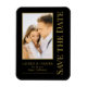 Salve a data em que o Na moda Dourado Script Modern Wedding Magnet apresenta um fundo preto com sua foto personalizada. Personalize com seu texto editando o texto nas caixas de texto fornecidas. Projetado para você por ©Evco Studio www.zazzle.com/store/evcostudio