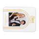 Salve a data em que os magnetos modernos de casamento com Na moda preto Dourado apresentam o seu arco de ouro de dentro favorito em um fundo branco. Personalize com seu texto editando o texto nas caixas de texto fornecidas. Projetado para você por ©Evco Studio www.zazzle.com/store/evcostudio