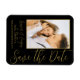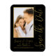 Salve a data em que o Na moda Dourado Script Modern Wedding Magnets apresenta um fundo preto com a sua fotografia personalizada. Personalize com seu texto editando o texto nas caixas de texto fornecidas. Projetado para você por ©Evco Studio www.zazzle.com/store/evcostudio