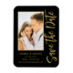 Salve a data em que o Na moda Dourado Script Modern Wedding Magnets apresenta um fundo preto com a sua fotografia personalizada. Personalize com seu texto editando o texto nas caixas de texto fornecidas. Projetado para você por ©Evco Studio www.zazzle.com/store/evcostudio