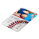 Salve a data com um tema de beisebol em mente! Foto de modelo superior e modelos de texto fornecidos neste belo close de uma bola de basebol. Salve o texto da data cercado por uma coroa dourada no topo, louros verdes azuis em cada lado e beisebol embaixo.