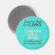 Turquesa com texto em letra cursiva branca e preta. Personalize esses Salve a Data com os Primeiros Nomes do Noivo e da Noiva e a Data do Casamento. É adorável enviar aos seus convidados de casamento para colocar na geladeira ou em outra superfície magnética como um lembrete agradável do próximo casamento. Desenhos por TamiraZDesigns.