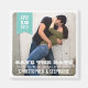 Moderno, porém com um talento rústico, uma foto do belo casal preenche a armação, e uma bandeira de chá aqua de tendências segura o mês, dia e ano da data do casamento. Um imã perfeito para deixar os hóspedes saberem sobre o noivado e a data do casamento.