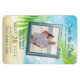 Anuncie seu dia especial com esta brilhante e alegre design evocando uma praia ouro com céu azul e luzes de galho, decorada por novas folhas verdes de palmeiras. Substitua a foto da amostra pelo seu próprio dentro, o quadro de madeira azul. Perfeito para casamentos de praia, casamentos de destino, casamentos tropicais, casamentos insulares, casamentos de Verão e outros locais relacionados com o mar. Visite a coleção para ver a suíte inteira.