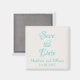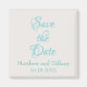 Um maravilhoso ímã de casamento azul e prateado, este fundo tem um fundo prateado com um "salve a data" azul escrito em rico azul. O casal é escrito em texto azul com a data abaixo. Trabalho de arte criado por: AMBilustrações http://www.etsy.com/shop/AMBillustrations/