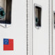 Íman decorativo com a bandeira de Samoa - Personalize-o: ajuste imagens; adicione um nome/slogan para presentes pessoais; adicione um logotipo de empresa/clube para itens de promocional © 2009 FlagAndMap.