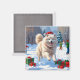 Íman Samoyed Correndo em Neve com Chapéu de Natal