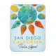 Design de San Diego California, brilhante e colorido, aprovado 100% pela Sunshine. Cores quentes de vermelho, laranja, turquesa e aqua em um padrão de cor d'água em um bonito fundo azul sombreado.