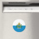 O Estado e a bandeira da guerra de São Marinho são formados por duas bandas horizontais iguais de branco (alto) e azul-claro com a casaco nacional de armas sobreposta no centro; a casaco de armas tem um escudo (com três torres em três picos) com uma coroa fechada sobre cima, flanqueada por um carvalho e uma coroa de louros, com um pergaminho abaixo da palavra LIBERTAS (Liberdade). As duas cores da bandeira representam paz (branco) e liberdade (azure).