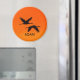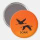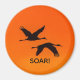 Íman redondo de 3" com imagem de dois guindastes de Sandhill voando para um pôr de sol laranja