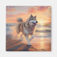 Íman Sandy Paws Alaskan Malamute Dog em Beach Sunset