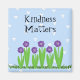 Um ditado inspirador excelente que é tão verdadeiro... bonito flores roxas com folhas verdes brilhantes e caem num fundo azul macio com pequenos corações brancos.