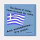 Bandeira grega ondulando e palavras que dizem, "O sangue da Hélade flui pelas minhas veias. E às vezes... seu ouzo." Divertido para um riso no Dia do Não ou a qualquer momento.