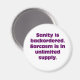 Se você está fora de sanidade, mas ainda tem sarcasmo, coloque este aviso: "Sanidade está atrasada. Sarcasmo está em fornecimento ilimitado." Outras cores disponíveis.