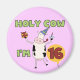 O texto diz "Santa Vaca, tenho 16 anos" em T-shirts, canecas, cartões, botões, ímãs, selos postais e outras roupa de 16 anos e presentes com uma bonita vaca de desenho animado numa festa que tem um presente de aniversário e um cupcake de aniversário!