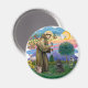 Santo Francis, o santo paterno dos animais é mostrado aqui abençoando um gato persa preto como um coelho tímido.