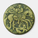 Rua. A batalha de George com o dragão, um medalhão antigo estilizado de um cavaleiro High Medieval em bronze da minha coleção.