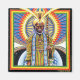 Nesta pintura acrílica de Chris Dyer, um homem sagrado está sobre o mundo com seu funcionarios na mão.