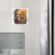 Este ímã quadrado apresenta uma pintura clássica de Joana Santo de Arco antes dos Santos Michael e Catherine com uma borda moderna.