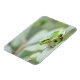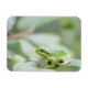 Íman fotográfico retangular com um sapo verde europeu de árvores, a arborea hyla, sentado sobre folhas criando um fundo verde. Tomada na Holanda.
