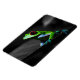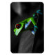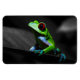 Fotografia muito legal, a preto e branco, de um sapo de árvore verde com grandes olhos vermelhos.