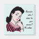 Um ímã quadrado com a imagem de uma mulher 50 morena com o dedo no queixo como se estivesse pronta para expressar um pensamento sobre a menta. Texto personalizável. Veja toda a coleção de Magnetos Nifty 50 em TOUCHES ESPECIAIS | Seção Favoritos para festas.