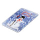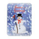Saudações da temporada, com um boneco de neve feliz e nevando